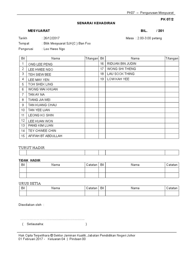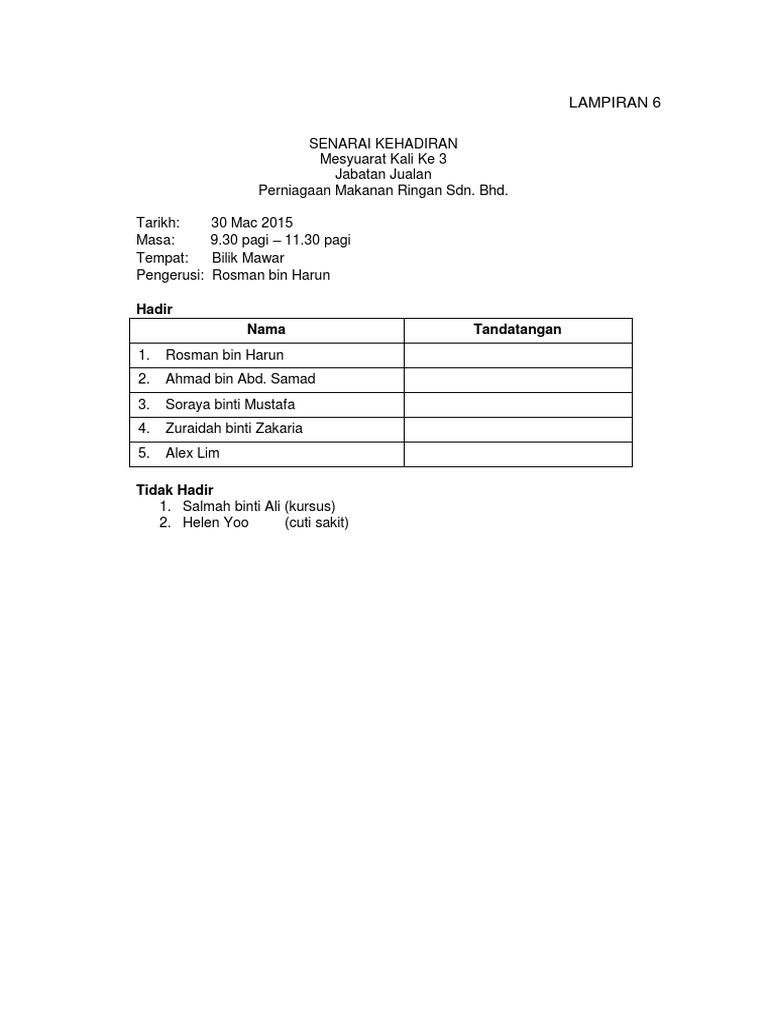 6 Senarai Kehadiran Mesyuarat Doc Triple A Enterprise Sdn Bhd 31 Jalan Equine 9 Taman Equine 43300 Seri Kembangan Selangor Tel 017 74121098 Fax Course Hero
