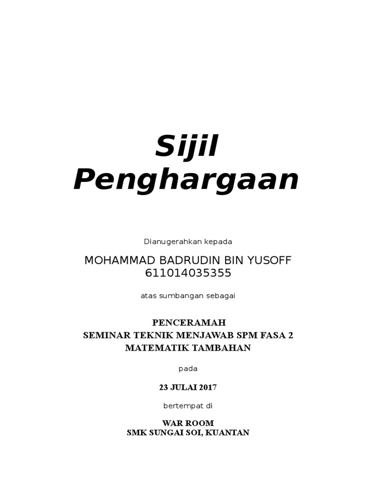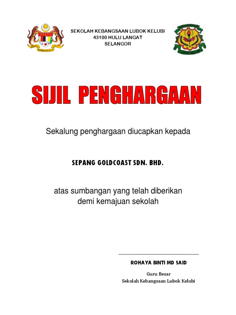 Contoh Sijil Penghargaan Docx