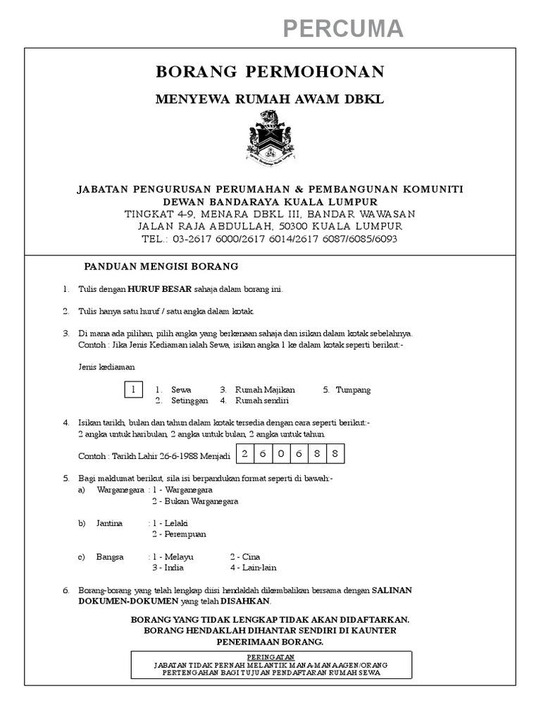 Borang Permohonan Menyewa Pdf