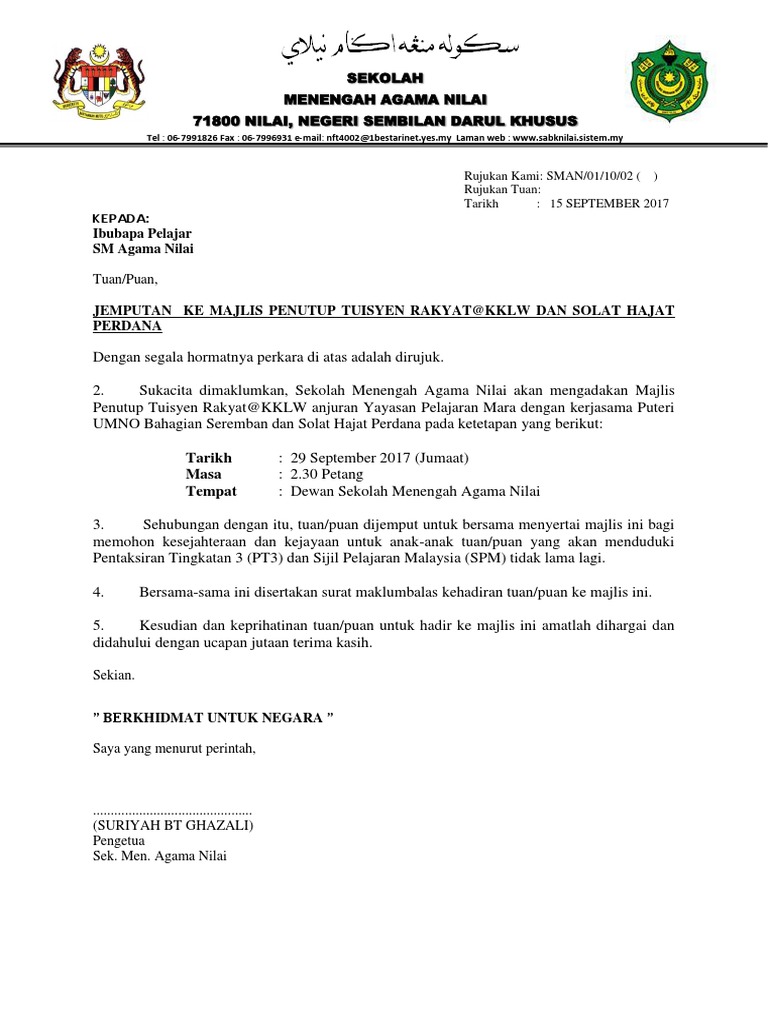 Surat Rasmi Jemputan Majlis Surat Rasmi W