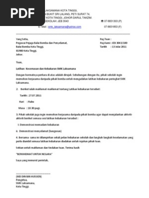 Contoh Surat Jemputan Kepada Bomba Untuk Latihan Kebakaran