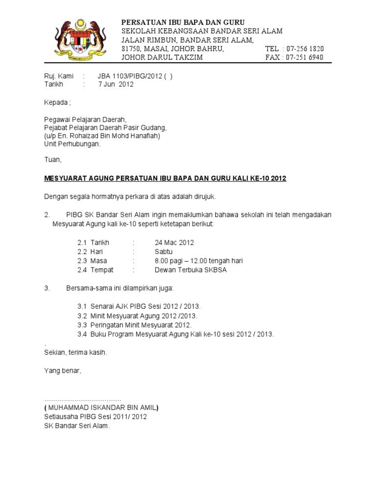 Sm Sains Sembrong Surat Jemputan Mesyuarat Agung Pibg Kali Ke 4 Sm Sains Sembrong