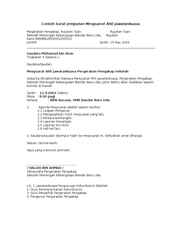 Contoh Surat Mesyuarat Ahli Jawatankuasa Doc Document