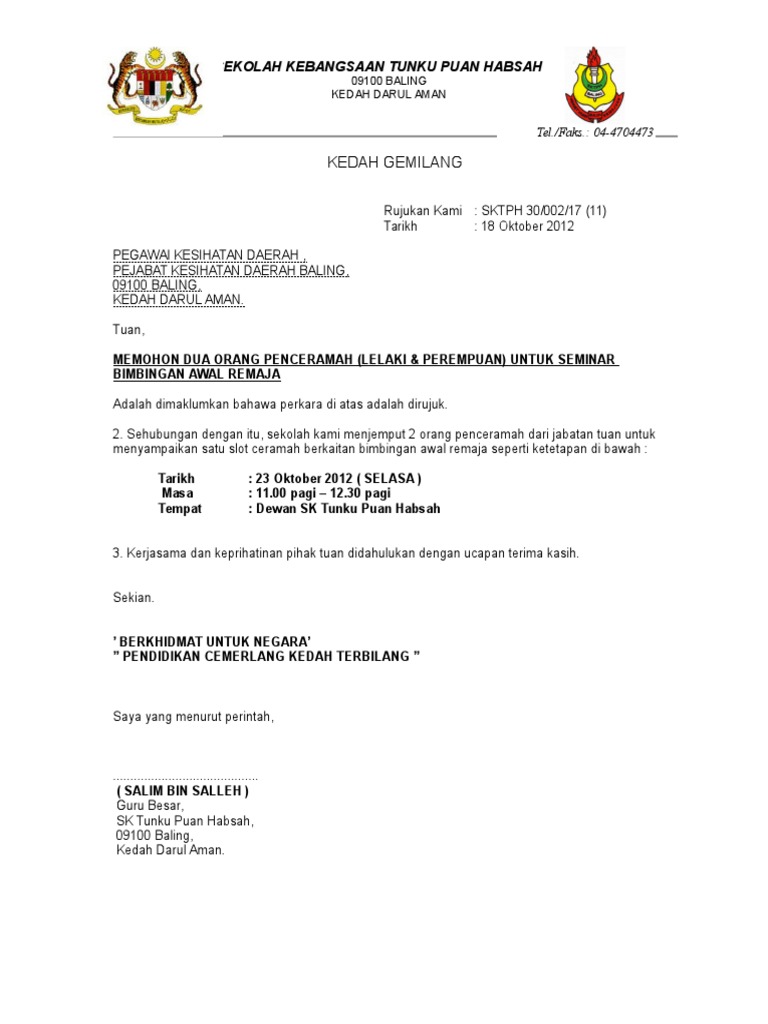 Surat Rasmi Jemputan Sebagai Penceramah Surat Rasmi K