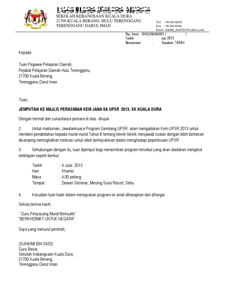 Surat Jemputan Ppd Ke Majlis Perasmian