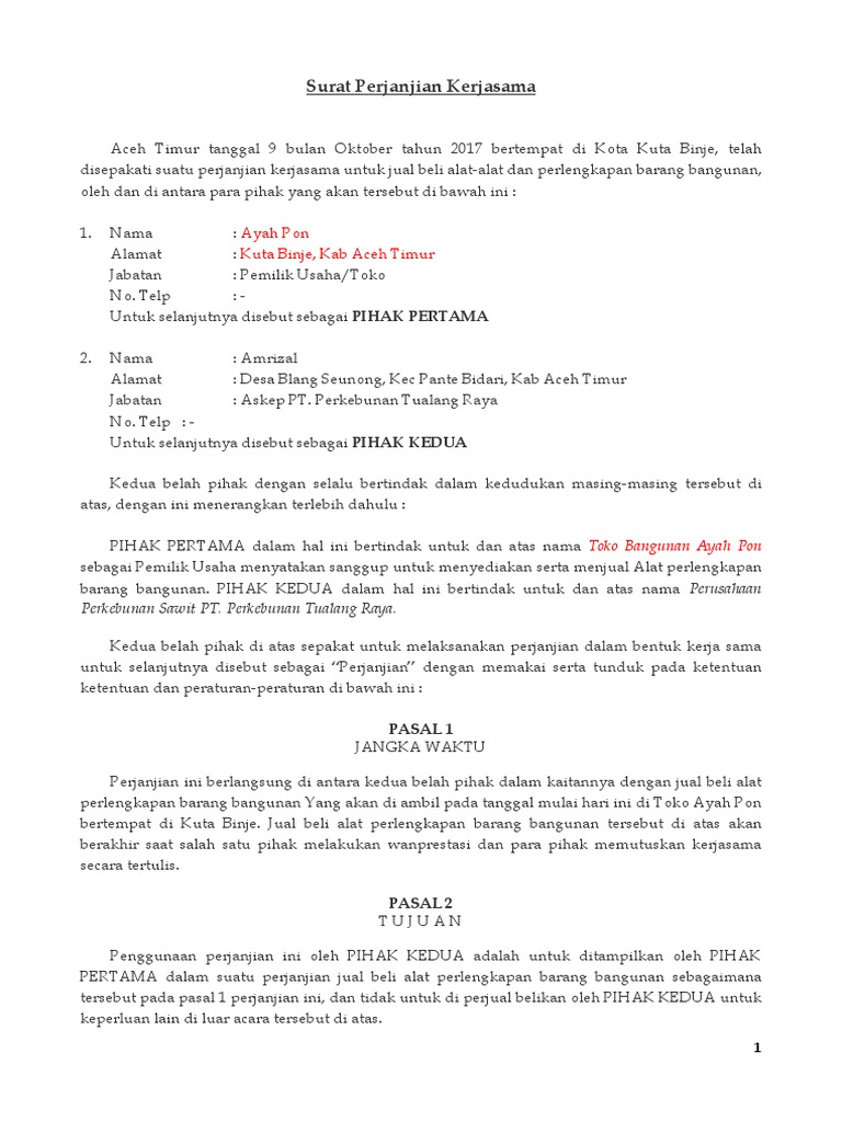 Surat Perjanjian Kontrak Kerjasama Docx