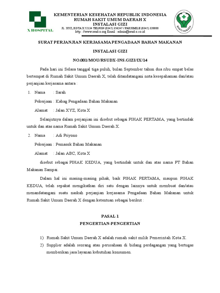 Contoh Surat Perjanjian Kerjasama Supplier Sayuran Kumpulan Contoh Surat