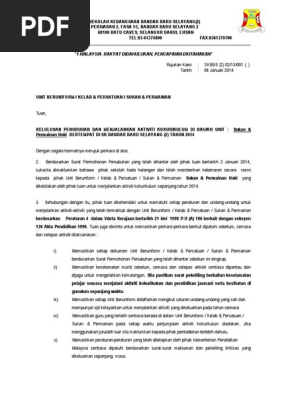 Surat Kelulusan Penubuhan Kelab Persatuan Unit Beruniform Dan Sukan Permainan Tahun 2015