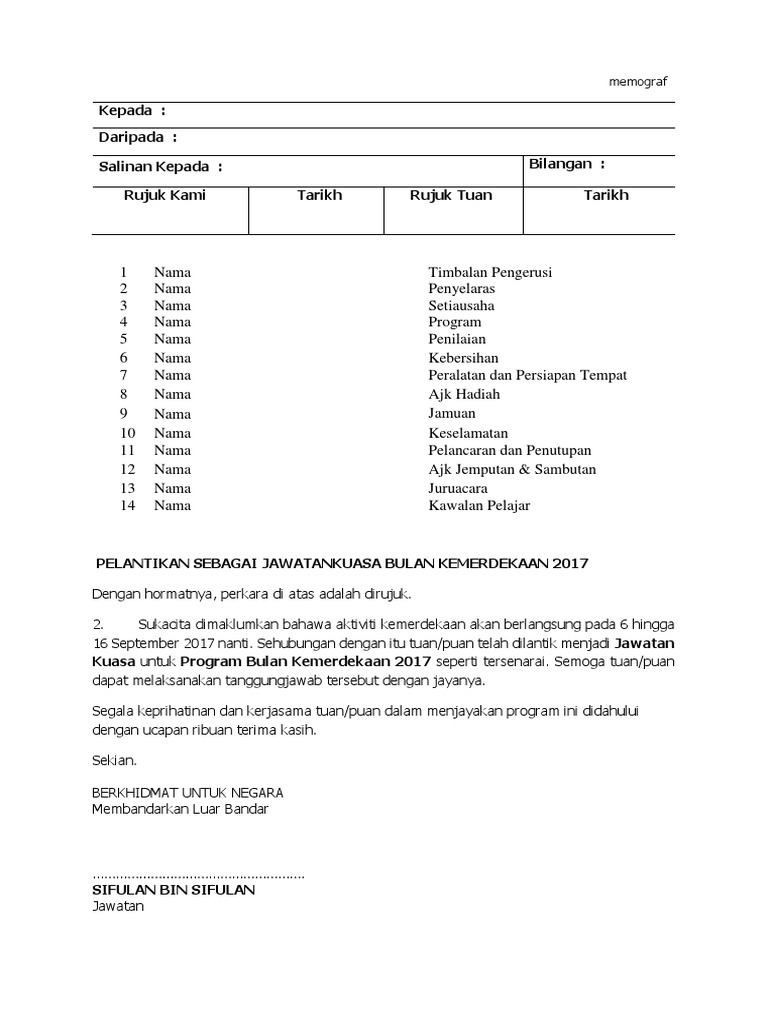 Contoh Surat Mesyuarat Ahli Jawatankuasa