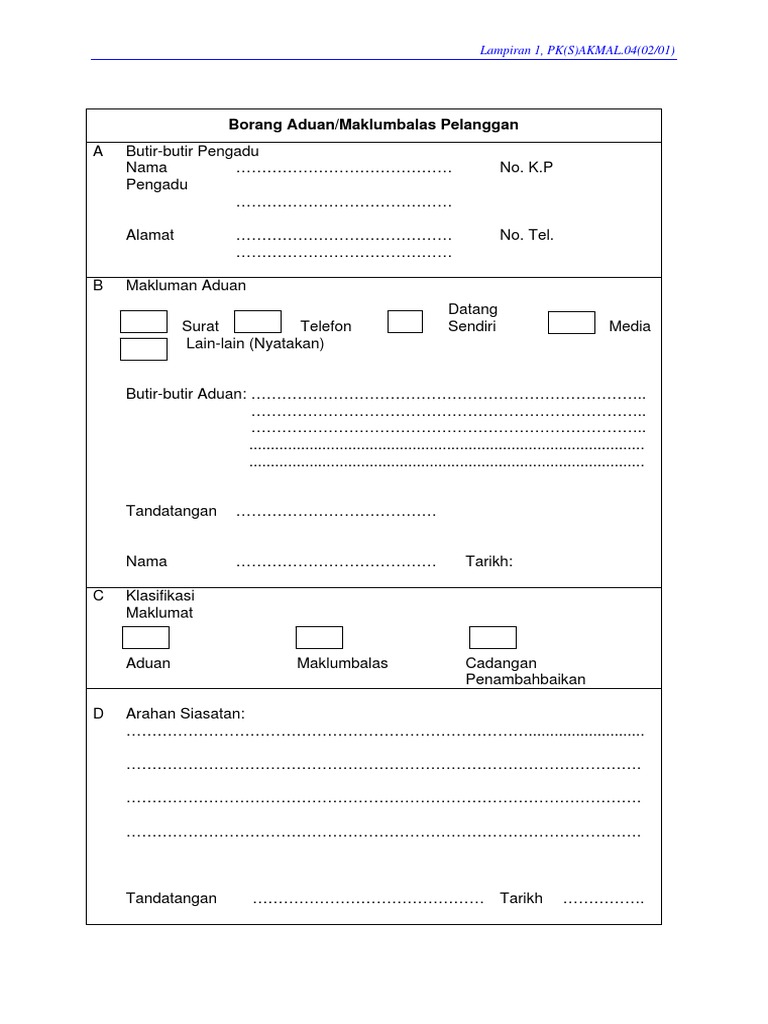 Pk08 3 Format Surat Maklum Balas Aduan Pelanggan