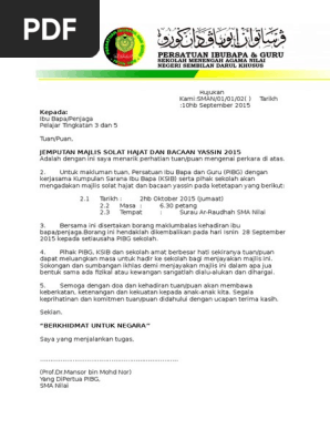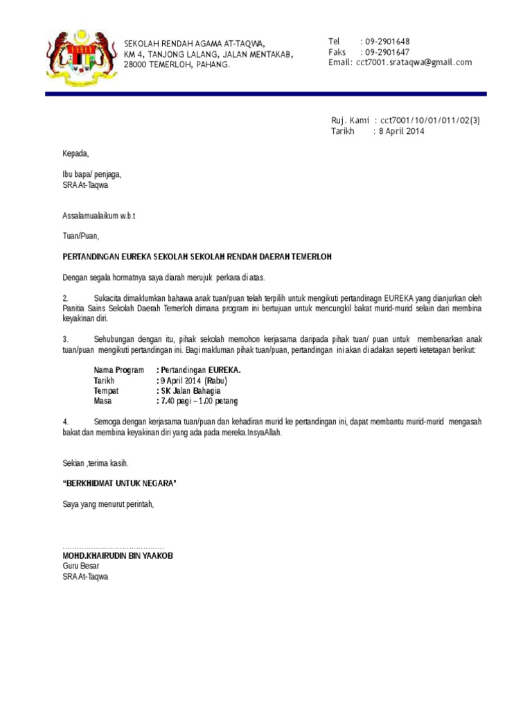 Surat Rasmi Ibu Bapa Kepada Guru Surat Rasmi U