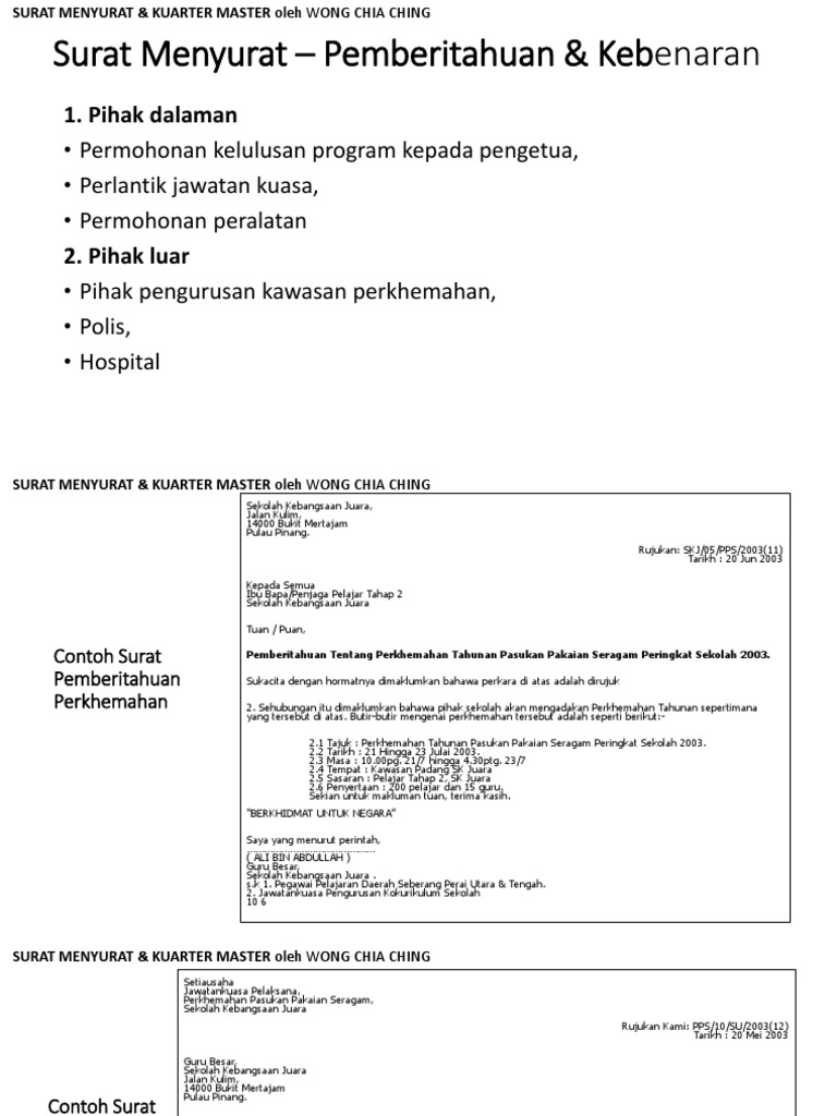 Surat Rasmi Ibu Bapa Kepada Guru Lamaran J