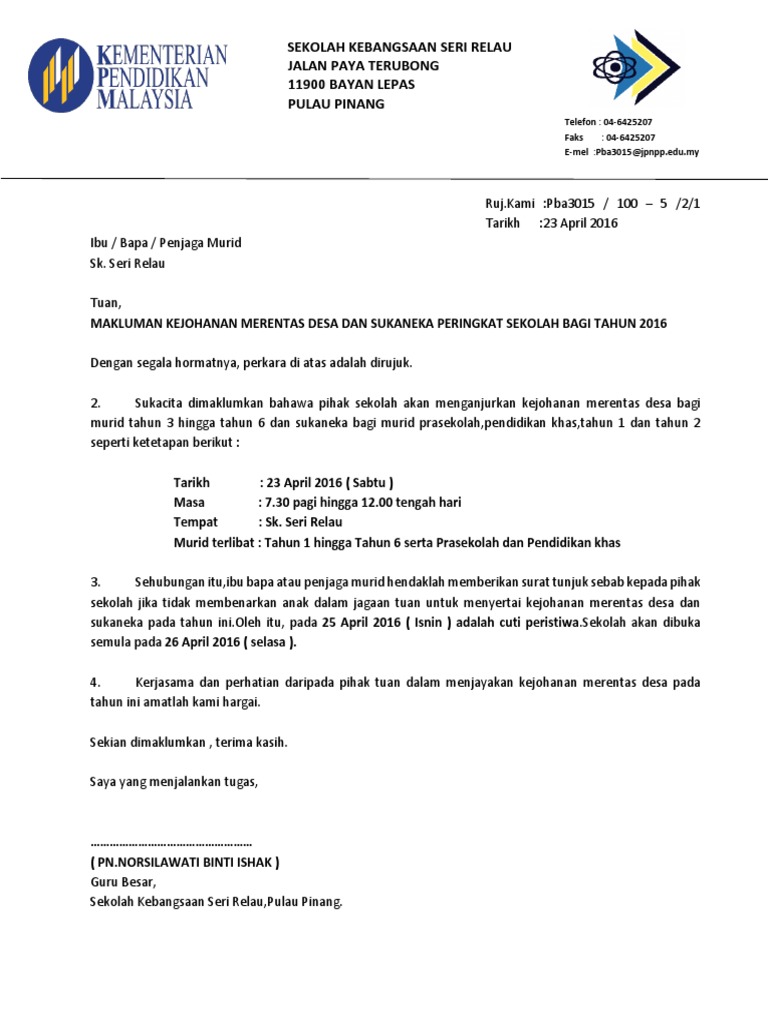 Contoh Surat Makluman Kepada Ppd