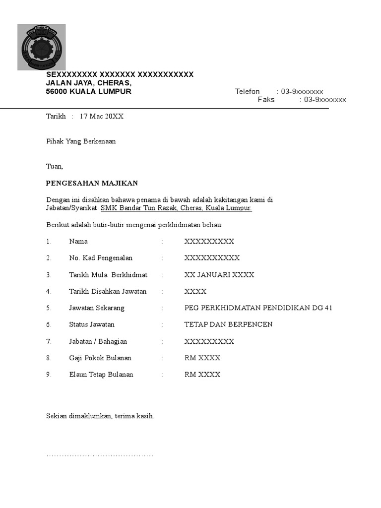 Contoh Surat Pengesahan Jawatan 6klzex6reylg