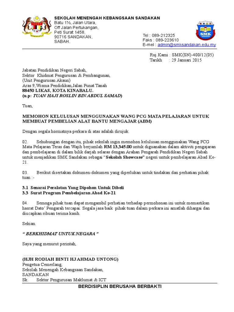 Contoh Surat Rasmi Kerajaan 2014 Rasmi Sua