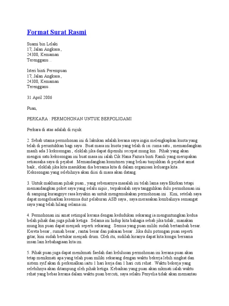 Contoh Surat Rasmi Dan Format Terkini Yang Betul Percuma Template