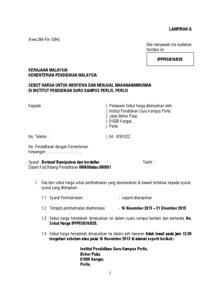Doc Borang Tender Kantin Dan Kedai Buku Skbbs2 Bba7241 Academia Edu