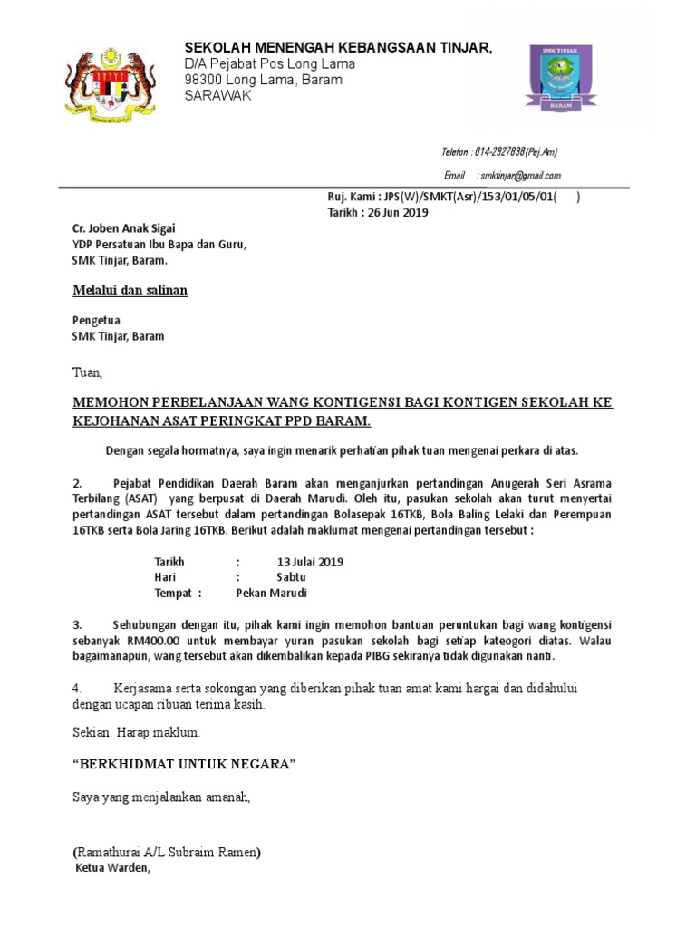 Surat Rasmi Permohonan Wang Rasmi Ru