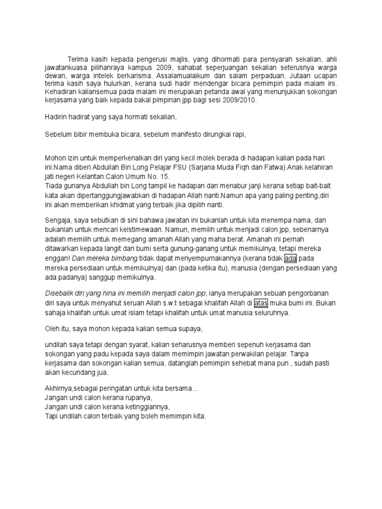 Doc Teks Ucapan Wakil Pelajar Nurul Izzah Hazirah Ii Academia Edu