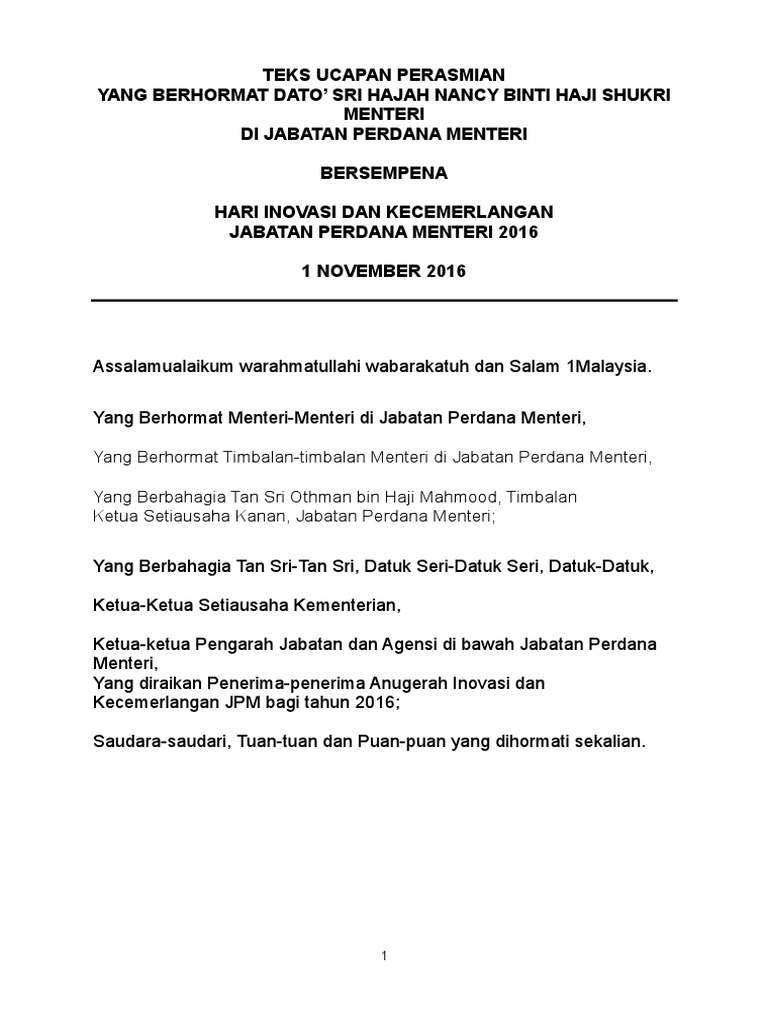 Teks Ucapan Yab Perdana Menteri Malaysia Kementerian Pembangunan Wanita Keluarga Dan Masyarakat Laman Rasmi Facebook