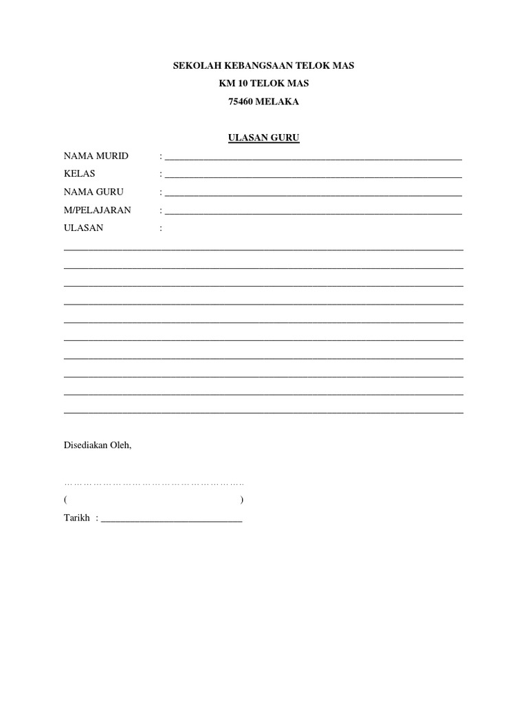 Borang Ulasan Guru Kelas Guru Mata Pelajaran Docx