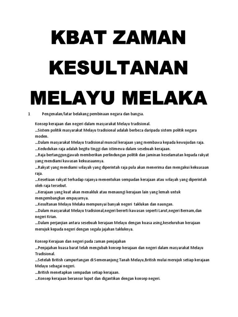 Kbat Zaman Kesultanan Melayu Melaka Dan Perpaduan