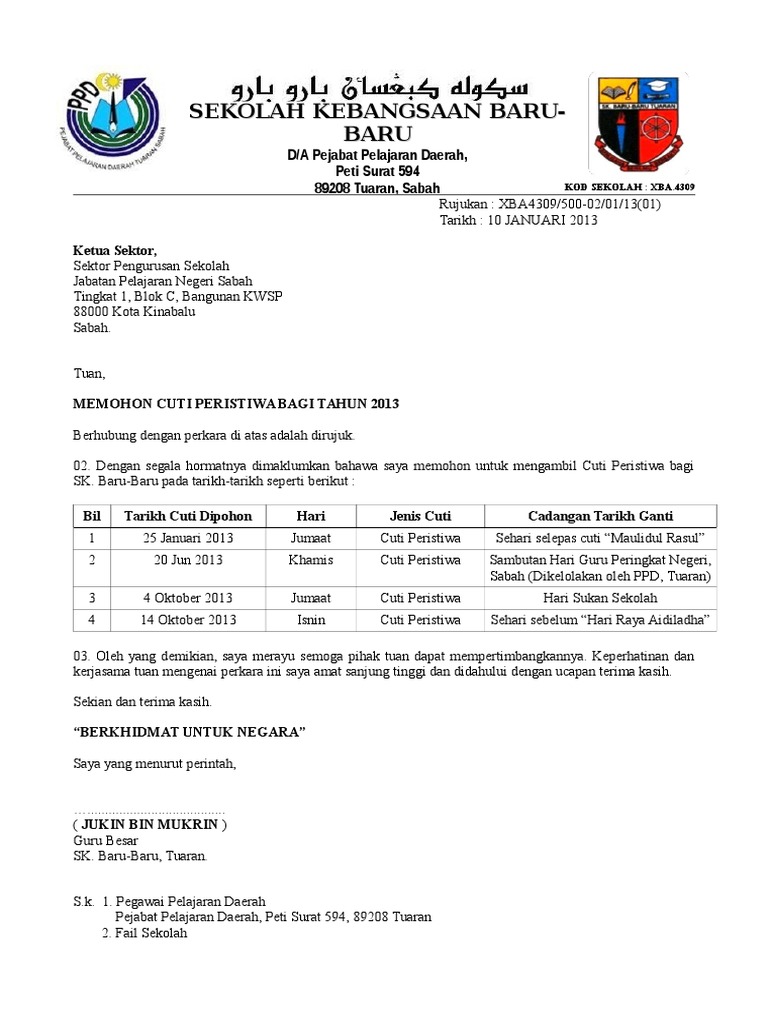 Memohon Cuti Peristiwa Bagi Tahun 2013 Doc