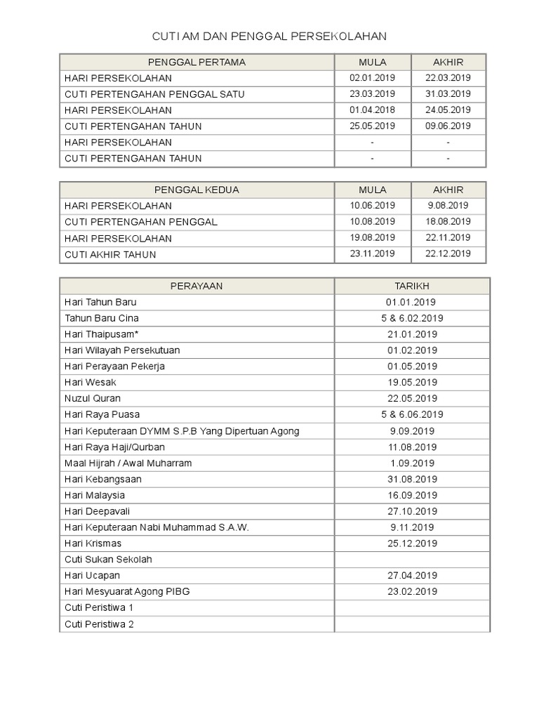 Kalendar Cuti Sekolah Cuti Umum 2019 Takwim Persekolahan Kpm