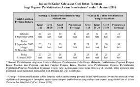 Kadar Kelayakan Cuti Rehat Tahunan Bagi Pegawai Perkhidmatan Awam Persekutuan Mulai 1 Januari 2016 Layanlah Berita Terkini Tips Berguna Maklumat