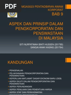 Bab 9 Aspek Dan Prinsip Dalam Pengkorporatan Dan Penswastaan Di Malaysia 1