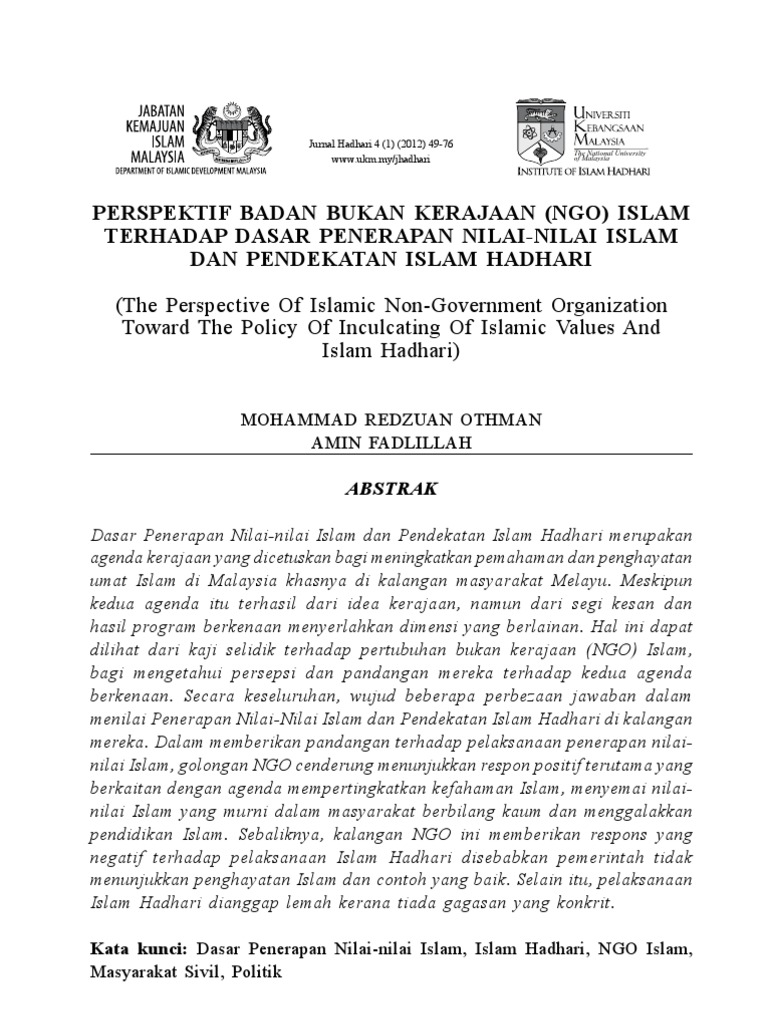 Dasar Penerapan Nilai Nilai Islam Di Malaysia