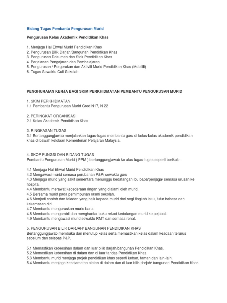 Bidang Tugas Pembantu Pengurusan Murid