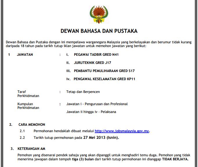 Permohonan Jawatan Kosong Dewan Bahasa Dan Pustaka Portal Kerja Kosong Graduan