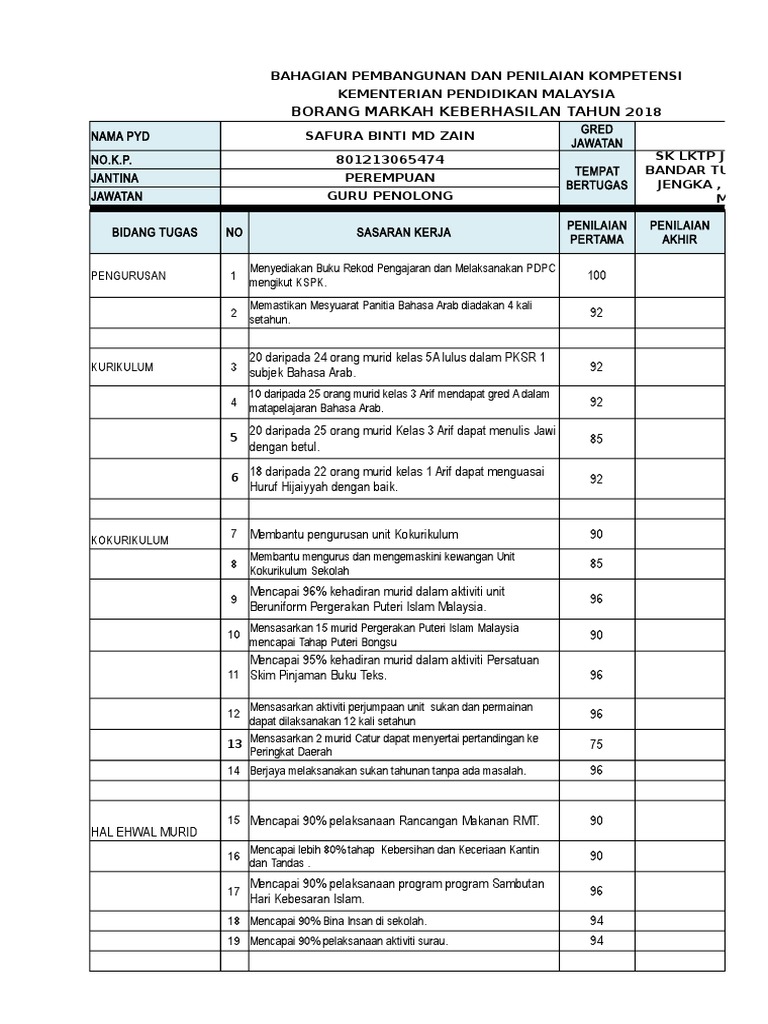 Contoh Borang Keberhasilan Guru Penolong Akademik Biasa Sumber Pendidikan