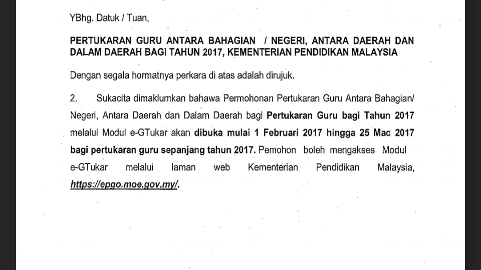 Permohonan Egtukar Awal Tahun 2017 Pendidik2u