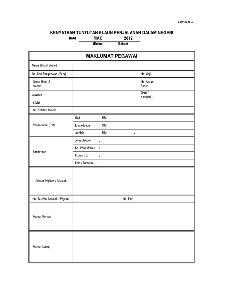 Unit Kewangan Padu Kenyataan Tuntutan Elaun Perjalanan Kenyataan Tuntutan Elaun Perjalanan Dalam Pdf Document