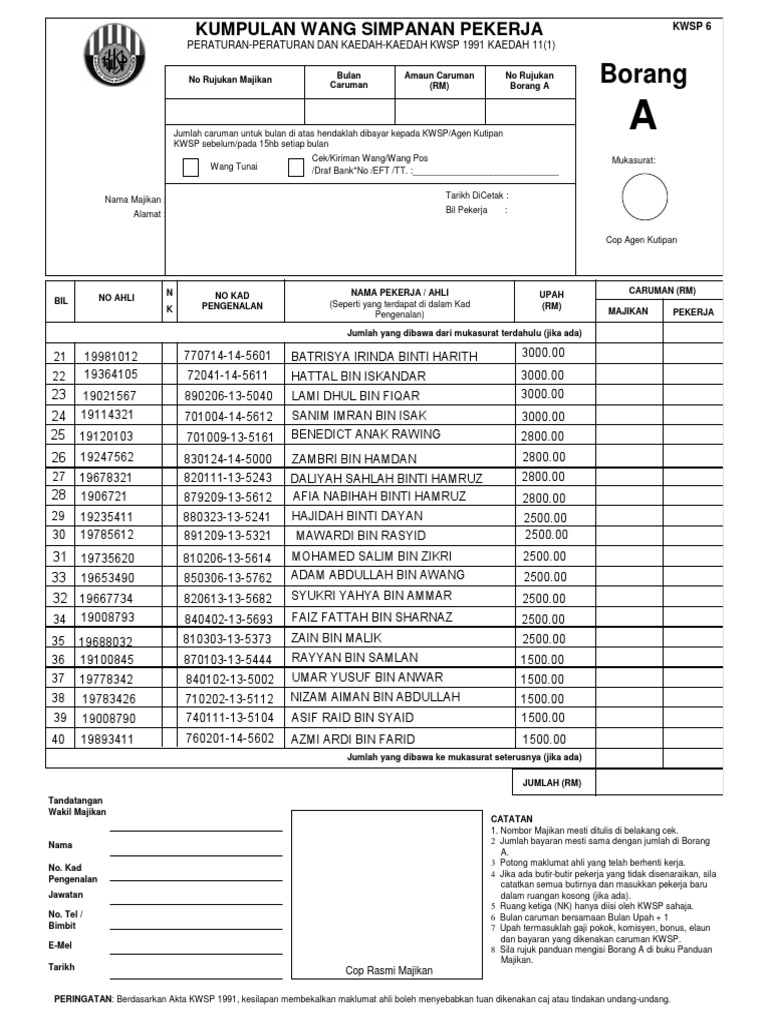 Form Epf 6 Form A