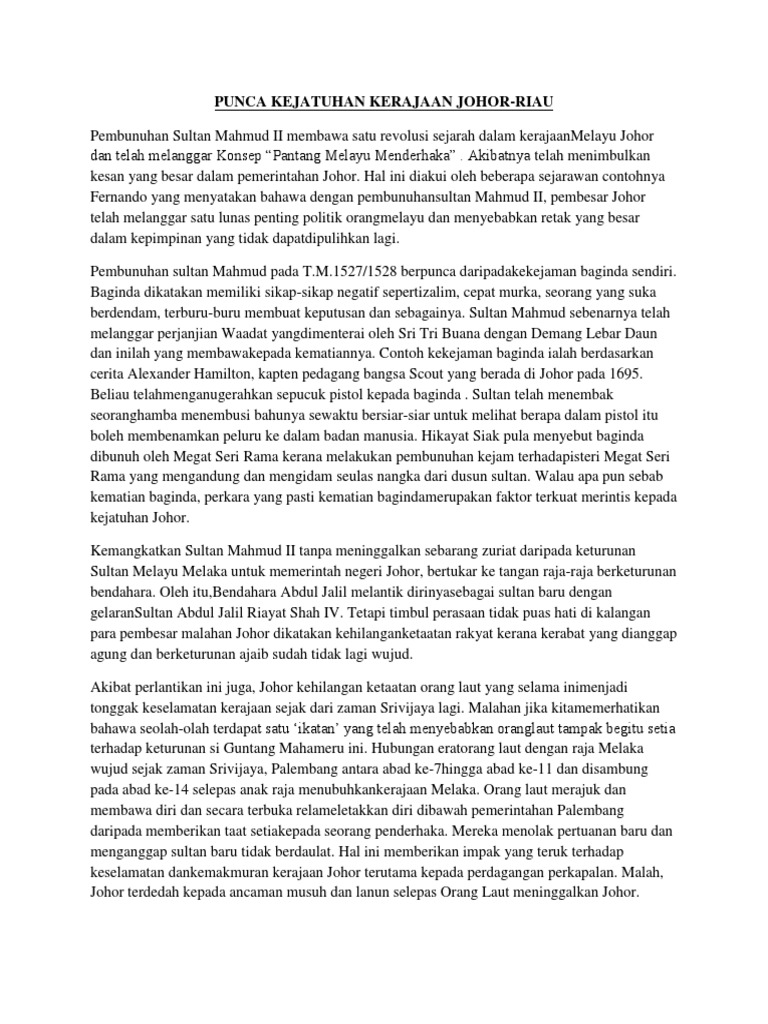 Isi Kandungan Mukasurat 1 Pendahuluan 2 2 Faktor Faktor Yang Menyumbang Kejatuhan Kesultanan Melaka 3 Hingga 6 3 Pengajaran Daripada Daripada Kejatuhan Melaka 7 Hingga 8 Chell Mn Academia Edu