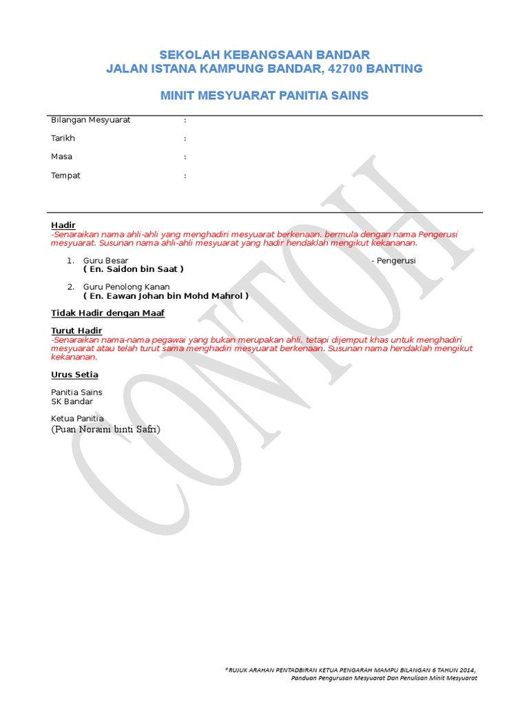 Doc Contoh Format Minit Mesyuarat Wawa Wawa Academia Edu