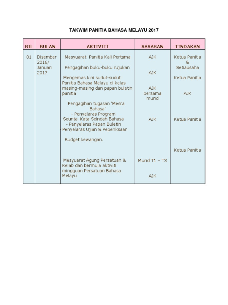 Takwim Panitia Bahasa Melayu 2017