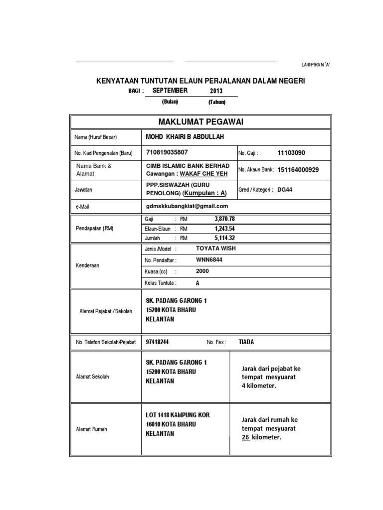 Borang Tnt New Koled September Khairi Bulan 9 Xls