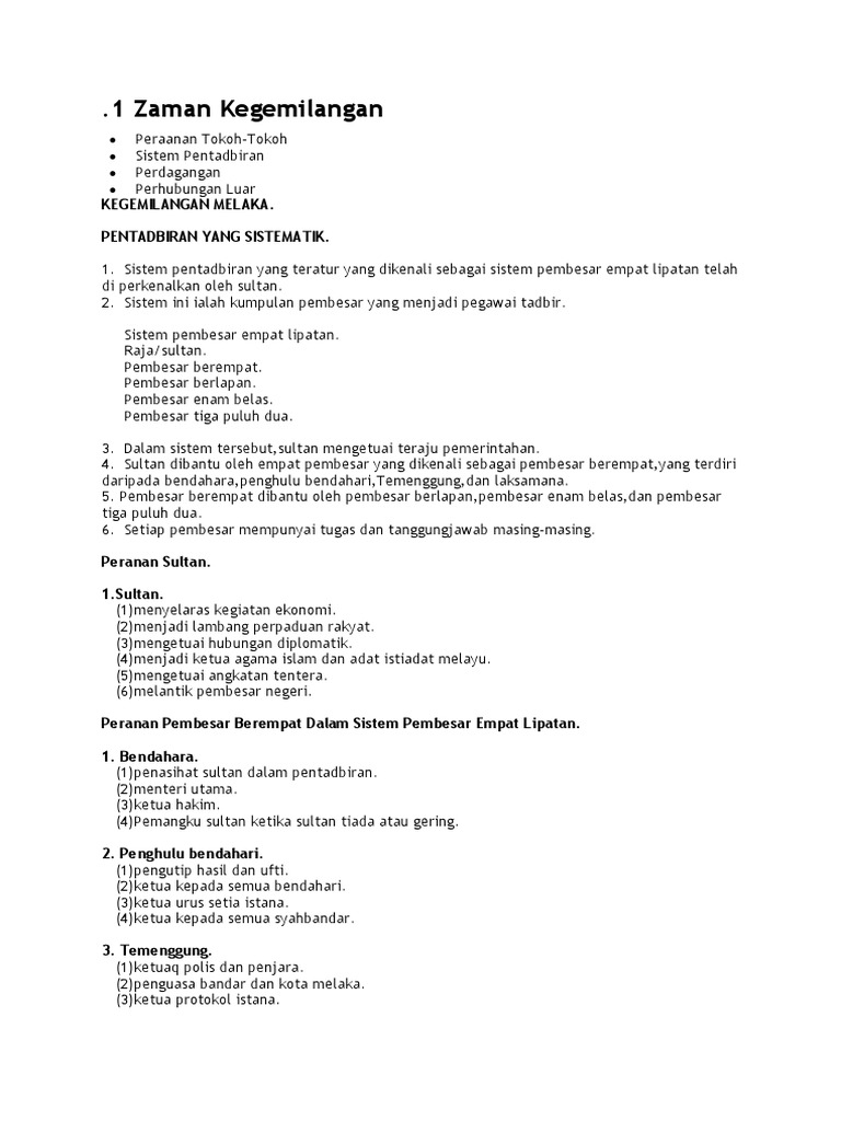 56649876 Kesinambungan Pemerintahan Kerajaan Melayu Melaka Dalam Sistem Ran Masa Kini Doc Doc Document