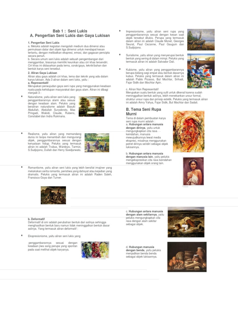 Bab 1 Seni Lukis A Pengertian Seni Lukis Dan Gaya Lukisan