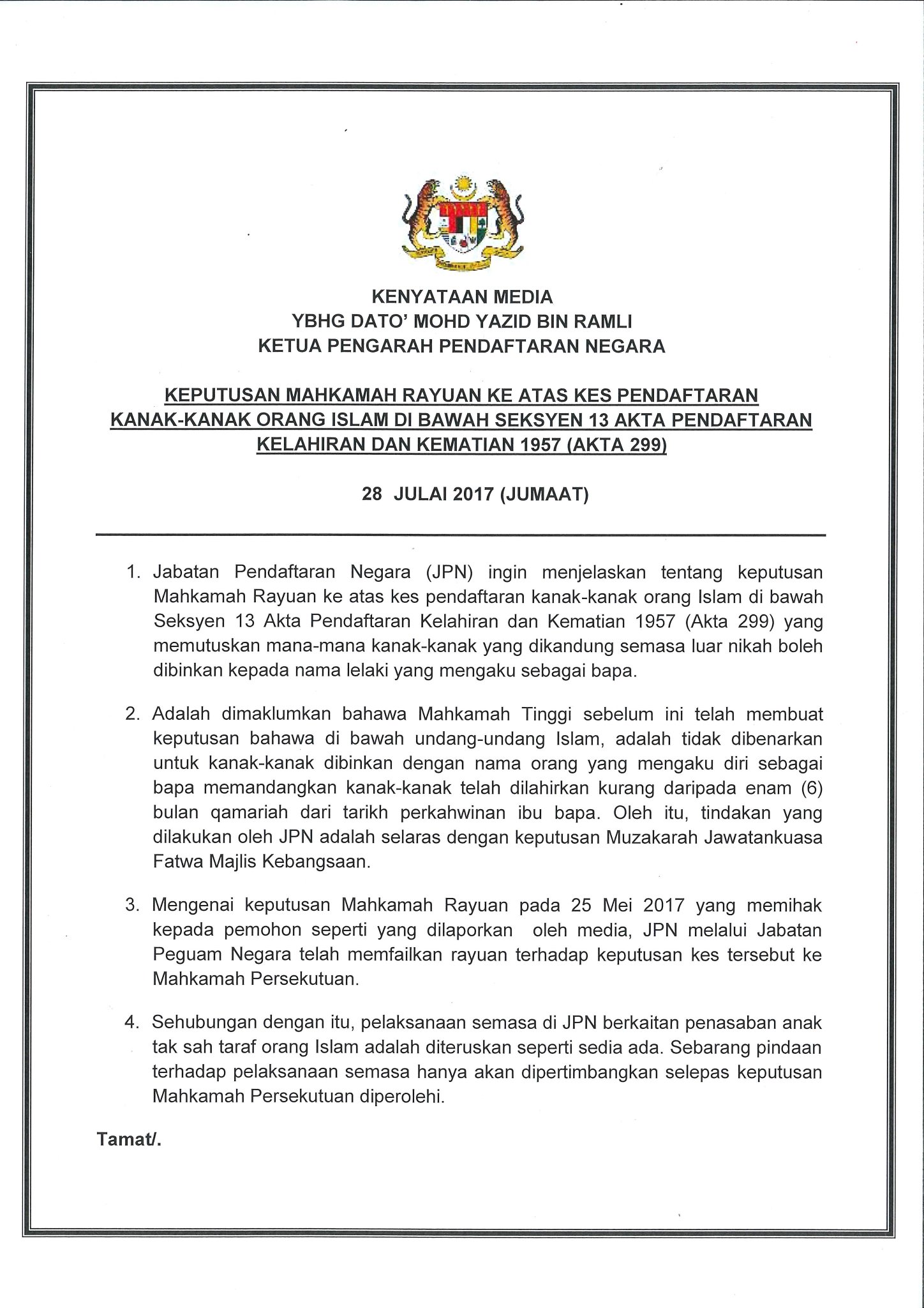 Jpn Malaysia On Twitter Kenyataan Media Ketua Pengarah Pendaftaran Negara