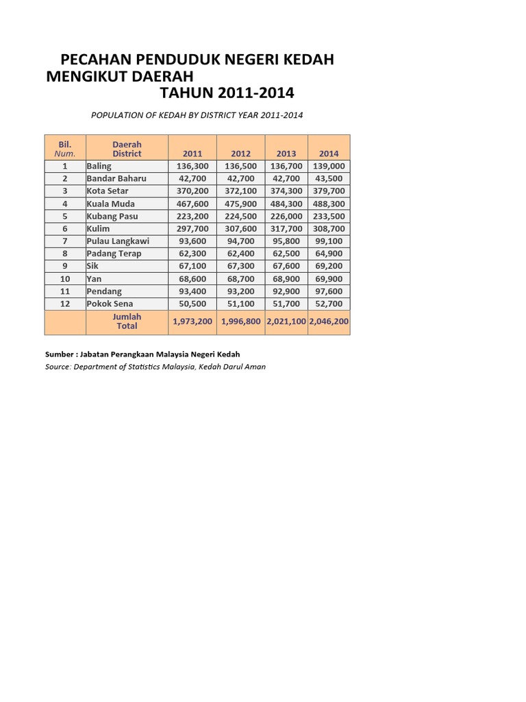 Pecahan Penduduk Negeri Kedah Mengikut Daerah Tahun 2011 2014